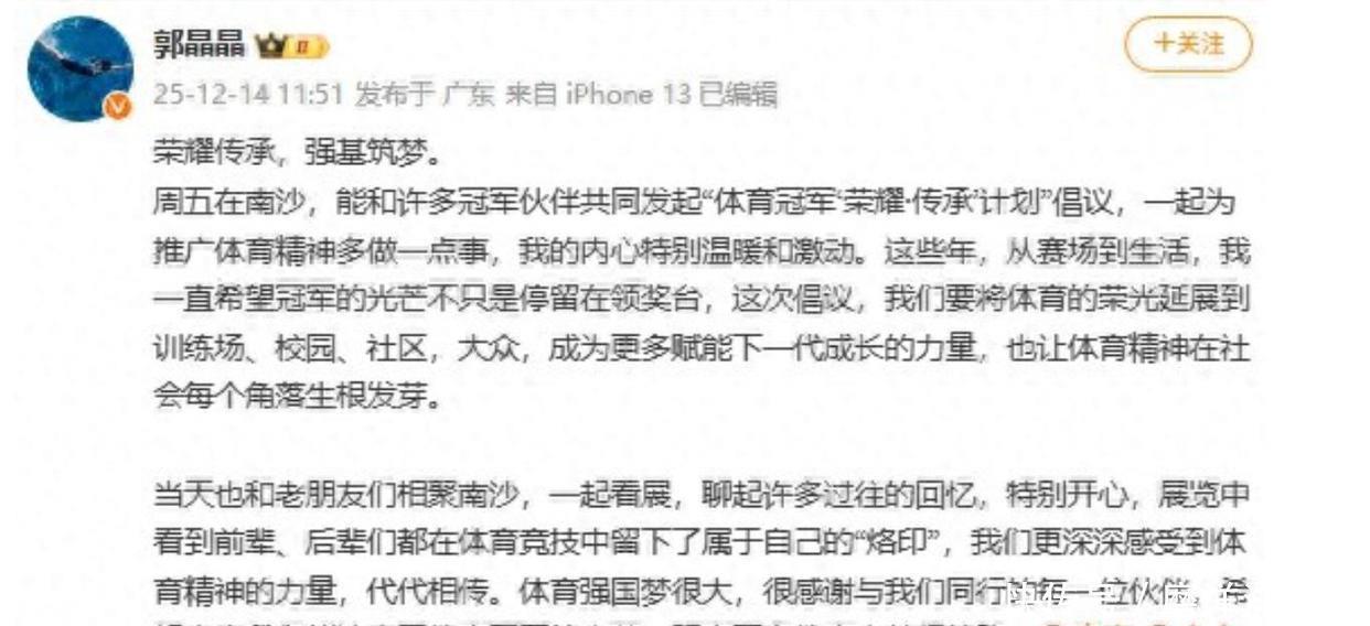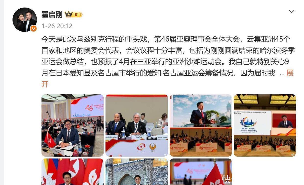 这么处理挺稳的。他没把郭晶晶说成需要同情的样子。也没趁机吸引更多关注。他人在国外开会,正好用这个场合说话。意思就是霍家该做的事还在做。心思还是花在体育和别的好事上。他更新完动态就去忙会议了。