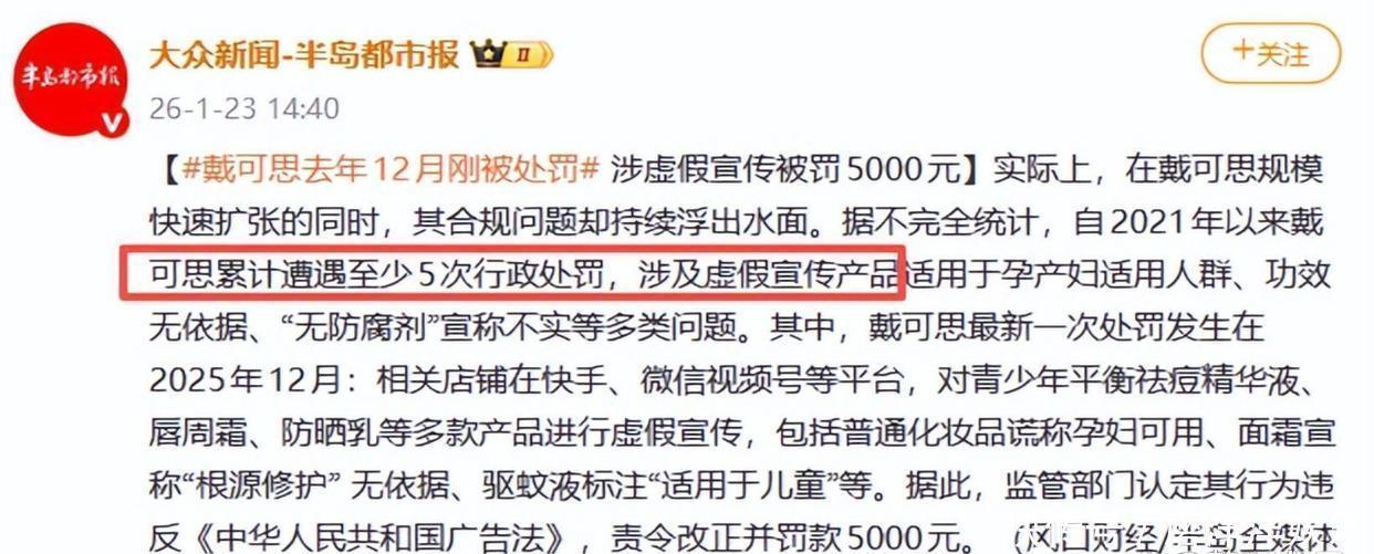 但网上有人去查了。这个牌子从二零二一年算起,大概被罚过五次。原因有的是宣传不真实,有的是东西没达到标准。最近一次处罚在二零二五年十二月,离这次被立案调查还不到三十天。