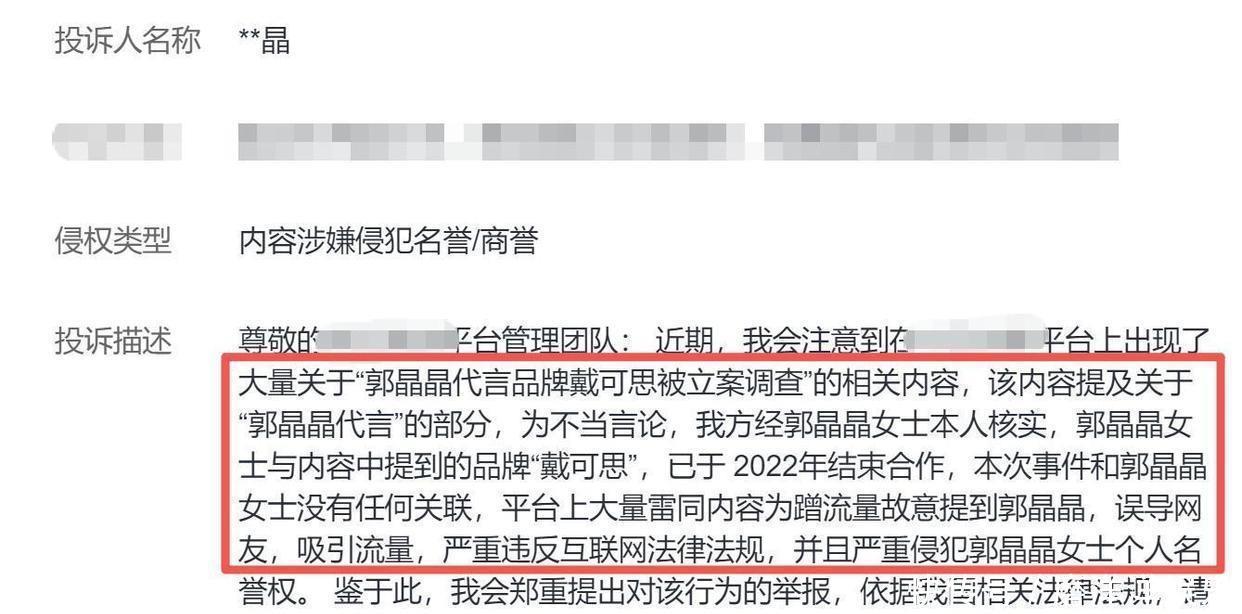 网上有些号开始乱传消息,看的人也跟着信了。郭晶晶那边的人看到了,马上写了东西递上去。他们跟网站说,那些胡说的号,得把东西删掉,号也得关掉。