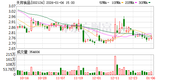 北京商报讯 1月6日,天邦食品发布公告称,公司2025年12月份销售商品猪66.23万头(其中仔猪销售23.8万头),销售收入6.13亿元,销售均价11.87元/公斤(商品肥猪均价为11.23元/公斤),环比变动分别为-2.29%、-6.27%、-1.97%。